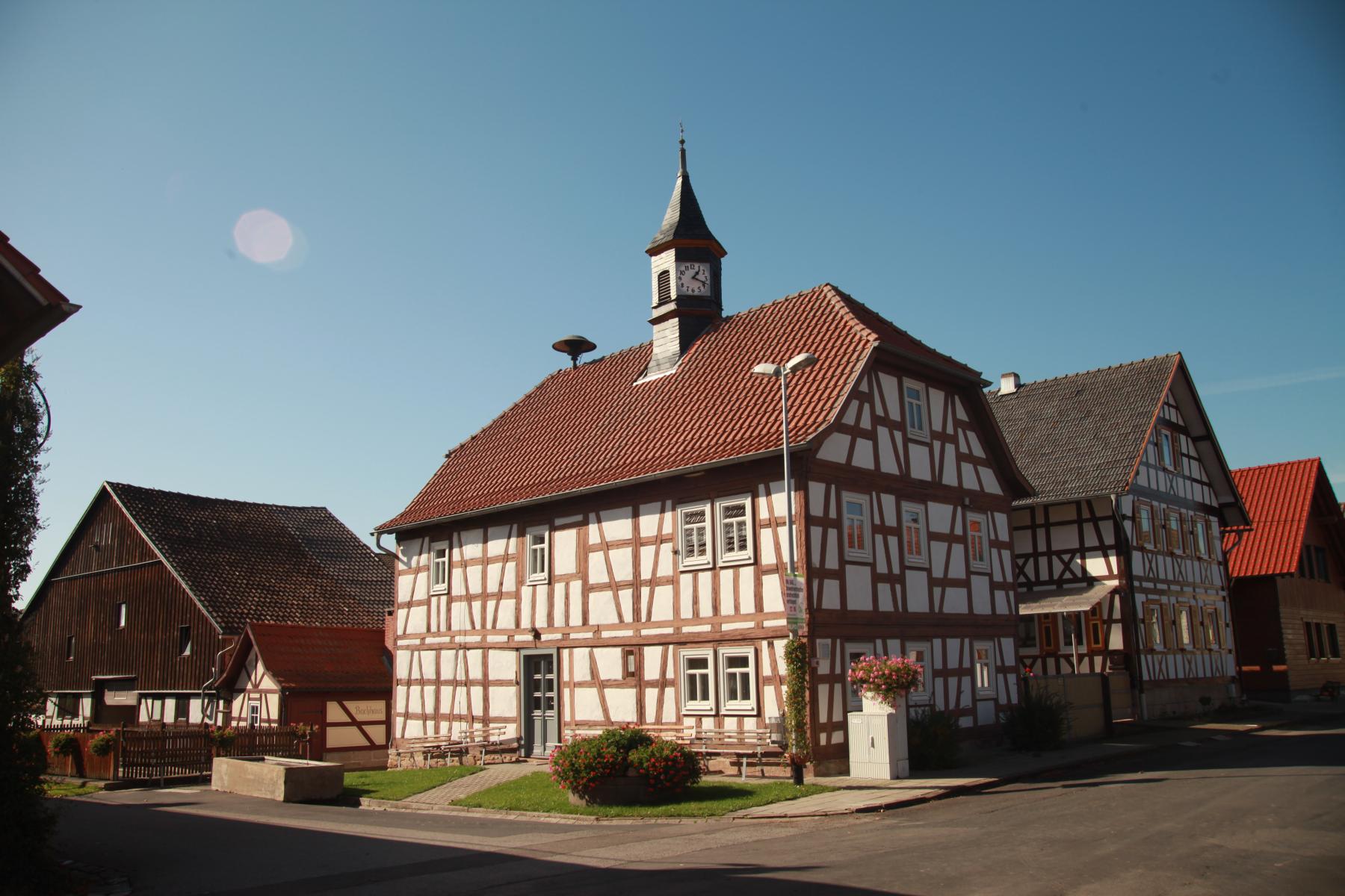 Völkershausen, das 1137 erstmals erwähnt ist, schmiegt sich in eine lichterfüllte Senke zwischen bewaldeten Anhöhen und liegt im idyllischen Talgrund der östlichen Kreck.